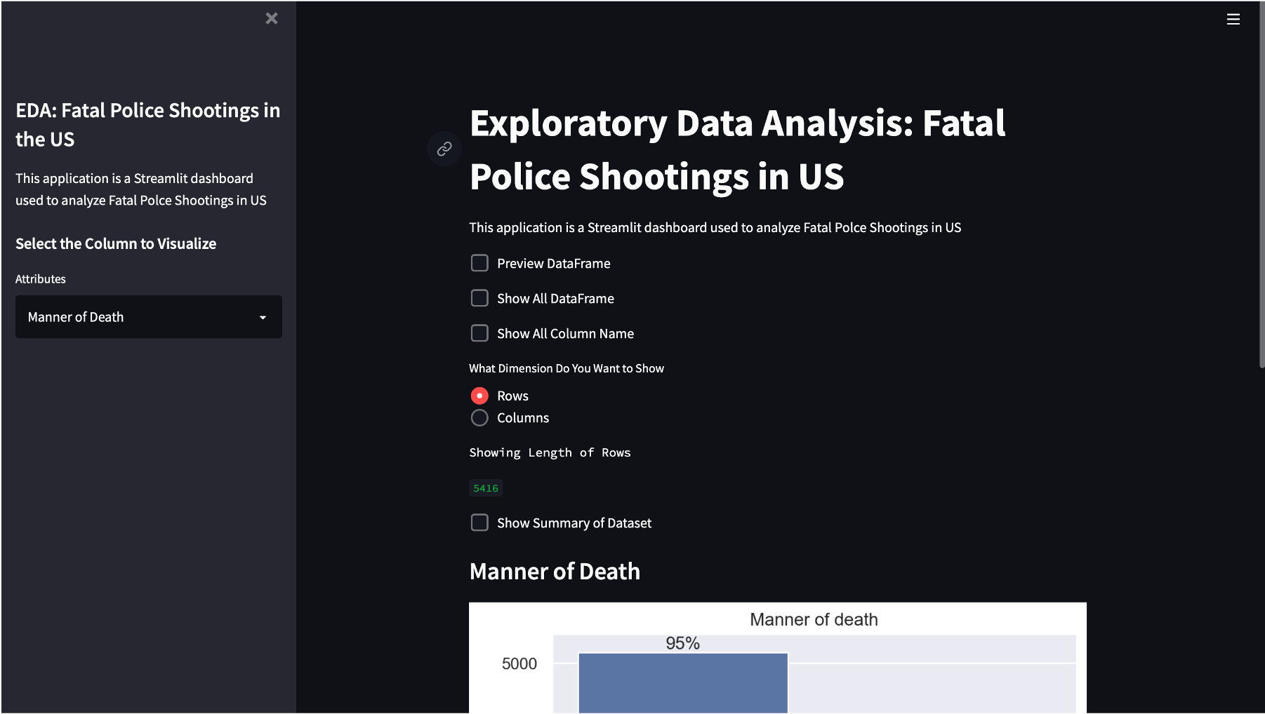 In this project, I created a Streamlit Dashboard to analyze Fatal Police Shootings in the US by performing Uni-variate