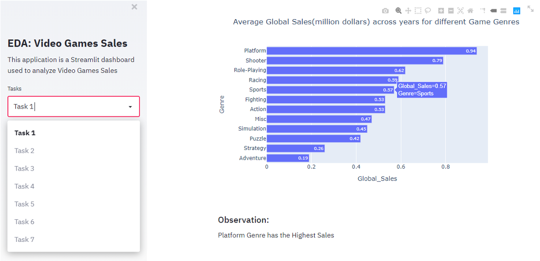 The Video Game Business has been on a downward trend for quite some time now, because of which many gaming companies are shutting down their operations. In this project, I analysed and visualized the dataset of Video Games Sales from the year 1980 till around 2015 to understand the trend in Global Sales w.r.t to the Genres using PlotlyExpress.